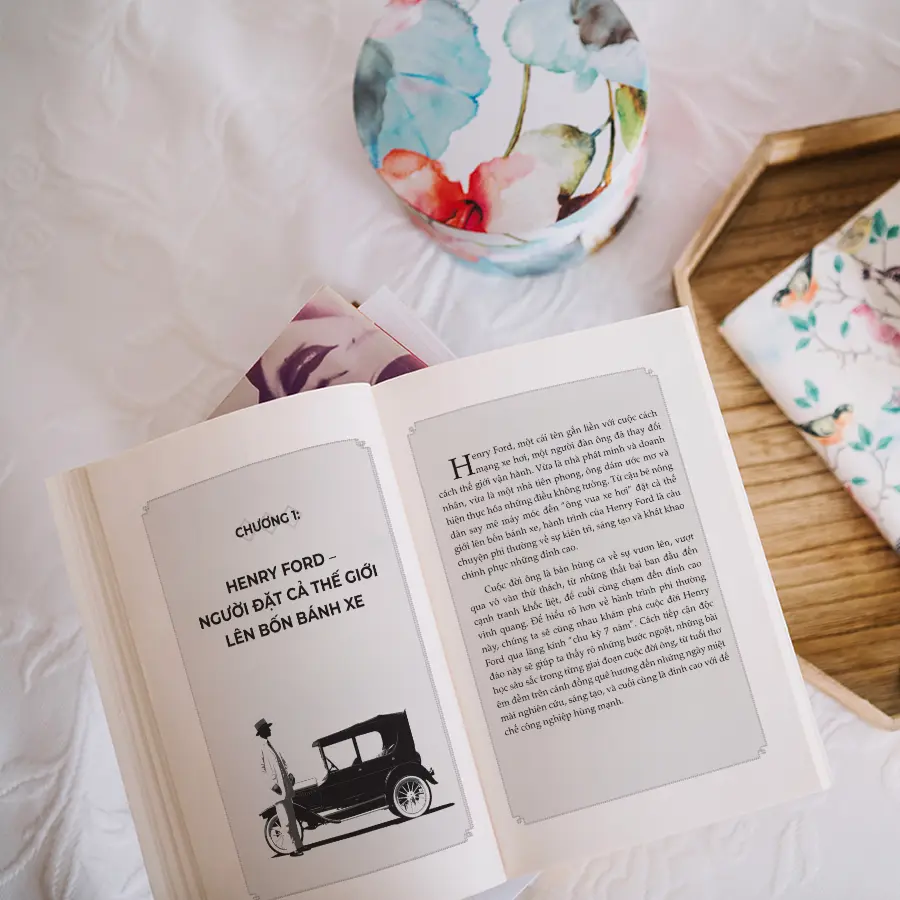 Henry Ford được tái hiện trong cuốn sách qua lăng kính độc đáo của “Chu kỳ 7 năm,” một cách tiếp cận giúp khắc họa rõ ràng từng giai đoạn quan trọng trong cuộc đời và sự nghiệp của ông. Mỗi chu kỳ là một bước ngoặt, từ những năm đầu khám phá niềm đam mê cơ khí, đặt những viên gạch đầu tiên trên con đường trở thành kỹ sư, đến khi bắt tay khởi nghiệp và xây dựng đế chế Ford Motor Company. Chu kỳ 7 năm không chỉ thể hiện sự tiến bộ của Ford mà còn là minh chứng cho tầm nhìn, ý chí và tinh thần không ngừng đổi mới. Từ giấc mơ giản đơn trong xưởng cơ khí đến việc cách mạng hóa sản xuất hàng loạt, Henry Ford đã từng bước tạo ra những thay đổi vượt bậc, không chỉ cho ngành công nghiệp ô tô mà còn cho cả xã hội hiện đại.