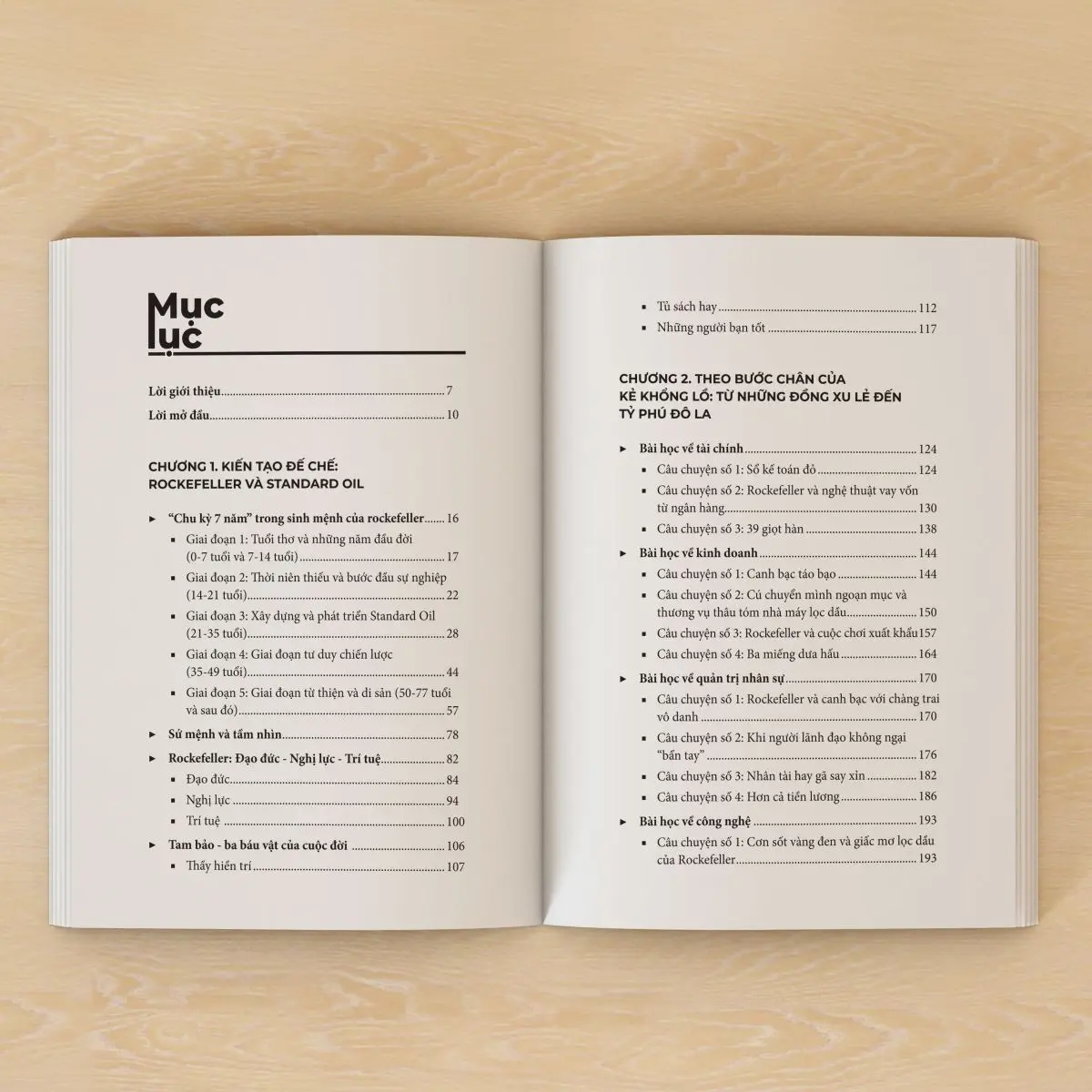 Từ một cậu bé nghèo khó, sống trong một gia đình với những mâu thuẫn và bất ổn, ông đã dần dần bộc lộ những tố chất lãnh đạo, sự kiên trì, tính toán, và cả một tầm nhìn chiến lược khác người. Cuốn sách sẽ đưa bạn đi theo từng bước chân của Rockefeller, từ những năm tháng tuổi thơ khó khăn, thời niên thiếu phải vật lộn với công việc, cho đến khi ông trở thành một doanh nhân lão luyện, xây dựng nên Standard Oil, một đế chế dầu mỏ khổng lồ, định hình lại ngành công nghiệp năng lượng toàn cầu. Mỗi giai đoạn đều được miêu tả chi tiết, sinh động, kèm theo những dẫn chứng lịch sử, những câu chuyện thực tế, giúp người đọc hình dung rõ nét hơn về bối cảnh lịch sử và những khó khăn mà Rockefeller đã phải đối mặt.