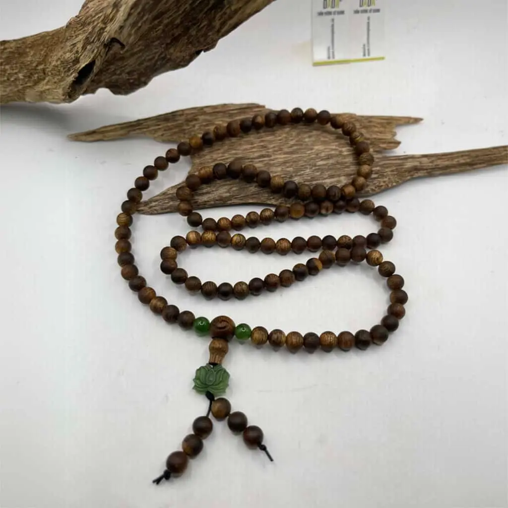 Vòng trầm 108 hạt 6mm kết hợp Ngọc Bích – biểu tượng của sự thanh tịnh và bình an